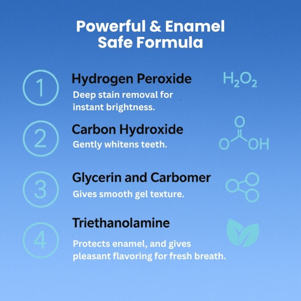 The precision gel combines 9% hydrogen peroxide and carbamide peroxide for rapid stain removal. Enjoy professional-level whitening from the comfort of home, revealing a brighter smile in just minutes.